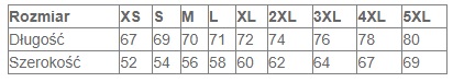 Dostępne rozmiary: XS, S, M, L, XL, 2XL, 3XL, 4XL, 5XL.