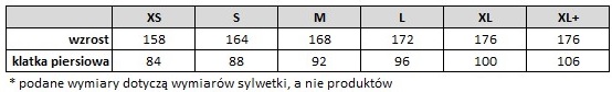 | Rozmiar | XS, S, M, L, XL, XL+ |