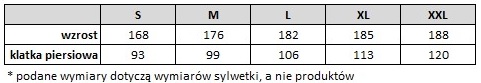 Dostępne rozmiary: S, M, L, XL, XXL.