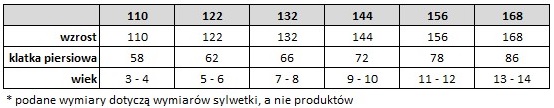 | Rozmiar | 110, 122, 132, 144, 156, 168 |
