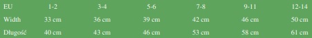 | Rozmiar | 3-4 / 5-6 / 7-8 / 9-11 / 12-14 |