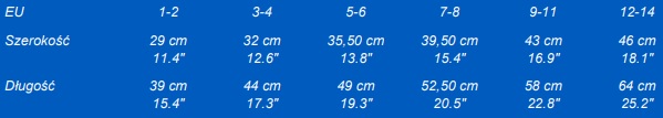 | Rozmiar | 3-4, 5-6, 7-8, 9-11, 12-14 |